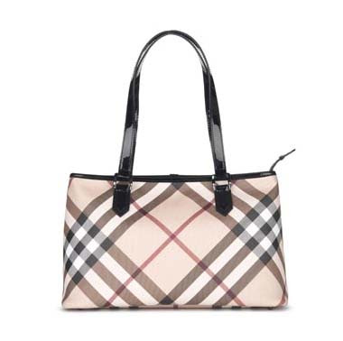 Leather plaque stamped with the Burberry logo sewn inside bag